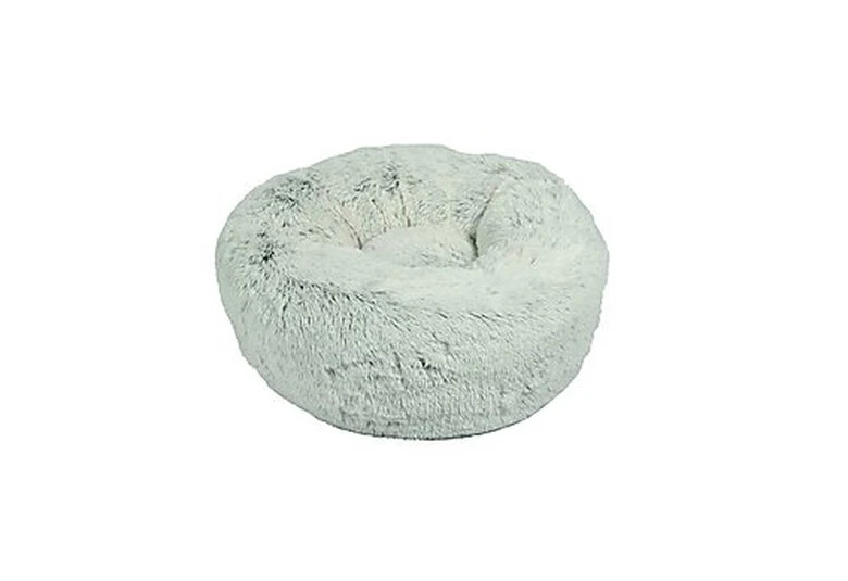 Couchage donut avec longue fourrure de couleur gris, très doux et confortable pour votre animal de compagnie.