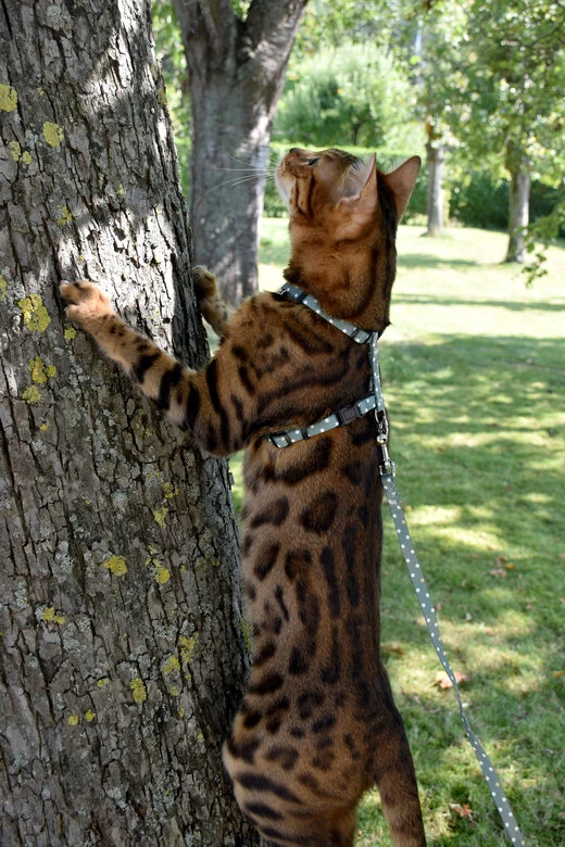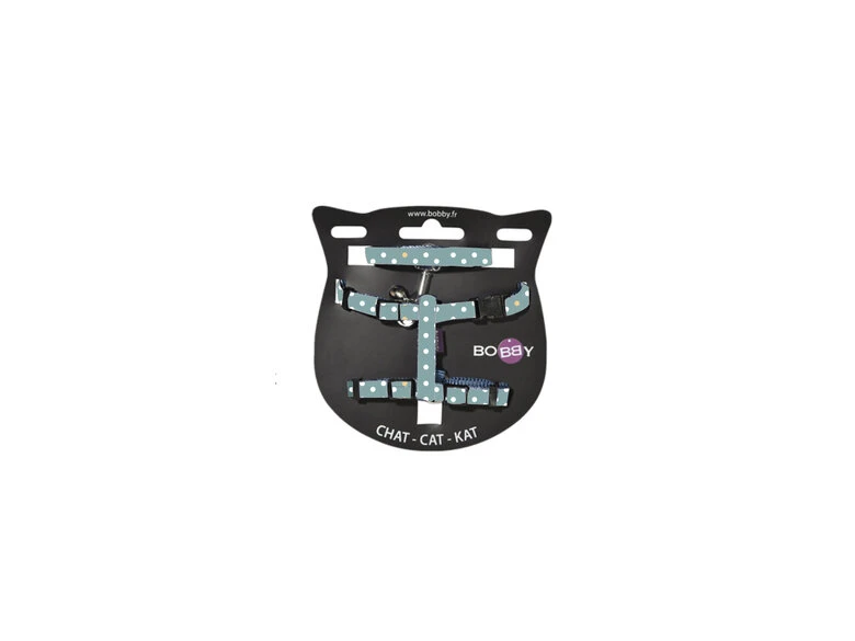 Harnais et laisse Pretty pour chat avec design petits pois, cette gamme aux coloris tendance est composée d’un motif pétillant et indémodable.