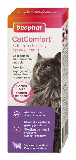 Pulvériser CatComfort® sur une couverture ou dans la caisse de transport de l’animal permet de prévenir les griffades inappropriées, les miaulements excessifs et les comportements.