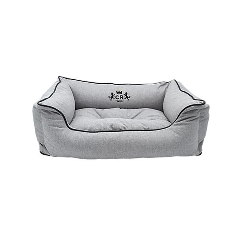 Corbeille pour chien et chat, le panier So Chic Comme Un Roi est en tissu type flannelle gris , avec une broderie noire au centre surmontée d’un strass « royal ». Le coussin central est amovible, fabriqué en Europe, en tissu de qualité supérieure, mousse haute densité et belle finition des coutures.