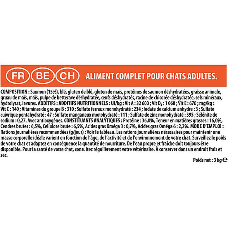 Contient OPTIDERMA® pour une peau saine et un pelage soyeuxContrôle des boules de poilsLimite la perte excessive de poilsRecette très savoureuseSaumon de haute qualité en 1er ingrédientSans colorants ajoutés et sans arômes ajoutés