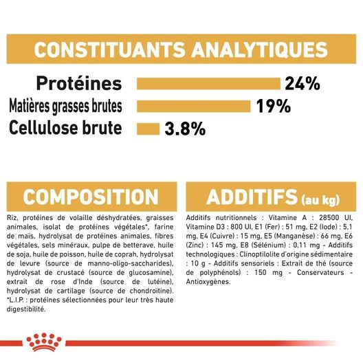 PERFORMANCE DIGESTIVE : Participe à la bonne santé digestive tout en tenant compte de la sensibilité digestive du Berger Allemand, grâce aux protéines L.I.P. * hyperdigestibles et à une sélection de fibres spécifiques pour limiter les fermentations intestinales tout en préservant l’équilibre de la flore intestinale.