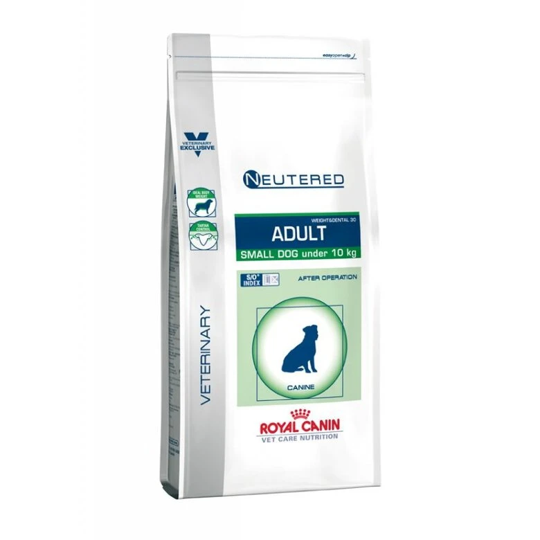 ROYAL CANIN NEUTEURED Adult Small Dog est un aliment complet pour chiens stérilisés, de petite race, ayant tendance à l’embonpoint et/ou à sensibilité bucco-dentaire. Grâce à ses ingrédients, le produit aide à maintenir un poids idéal, à limiter la formation de tartre et à assurer une tolérance digestive maximale. Le complexe synergique d’antioxydants contribue à diminuer les agressions cellulaires dues au stress oxydatif et aux radicaux libres. Même si c’est un produit réduit en calories, il a un pouvoir satiétogène.