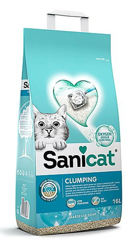 La litière Sanicat clumping est une litière agglomérante à base de bentonite. Au contact de l’urine la matière s’agglomère et forme des blocs compacts faciles à retirer du bac. Cela permet un entretien du bac plus facile et une durée d’utilisation plus longue, vous ne retirez que les parties salies, votre litère est toujours propre ! Cette litière a été enrichie à l’oxygène actif pour un meilleur contrôle des odeurs et une hygiène optimale.