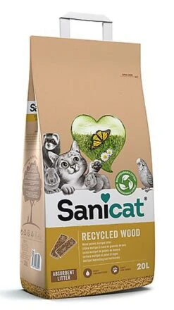 La litière naturelle Sanicat à base de bois 100% recyclé est une litière végétale ultra absorbante et biodégradable. Cette litière provient de résidus boisés issus de l’industrie de la construction ce qui en fait une litière 100% circulaire. Cela contribue à lutter contre la déforestation et à préserver l’environnement. Aucun arbre n’est abattu !