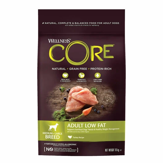 Les croquettes Wellness CORE Light Dinde sont spécialement conçues pour les chiens adultes stérilisés ou ayant tendance à prendre du poids.